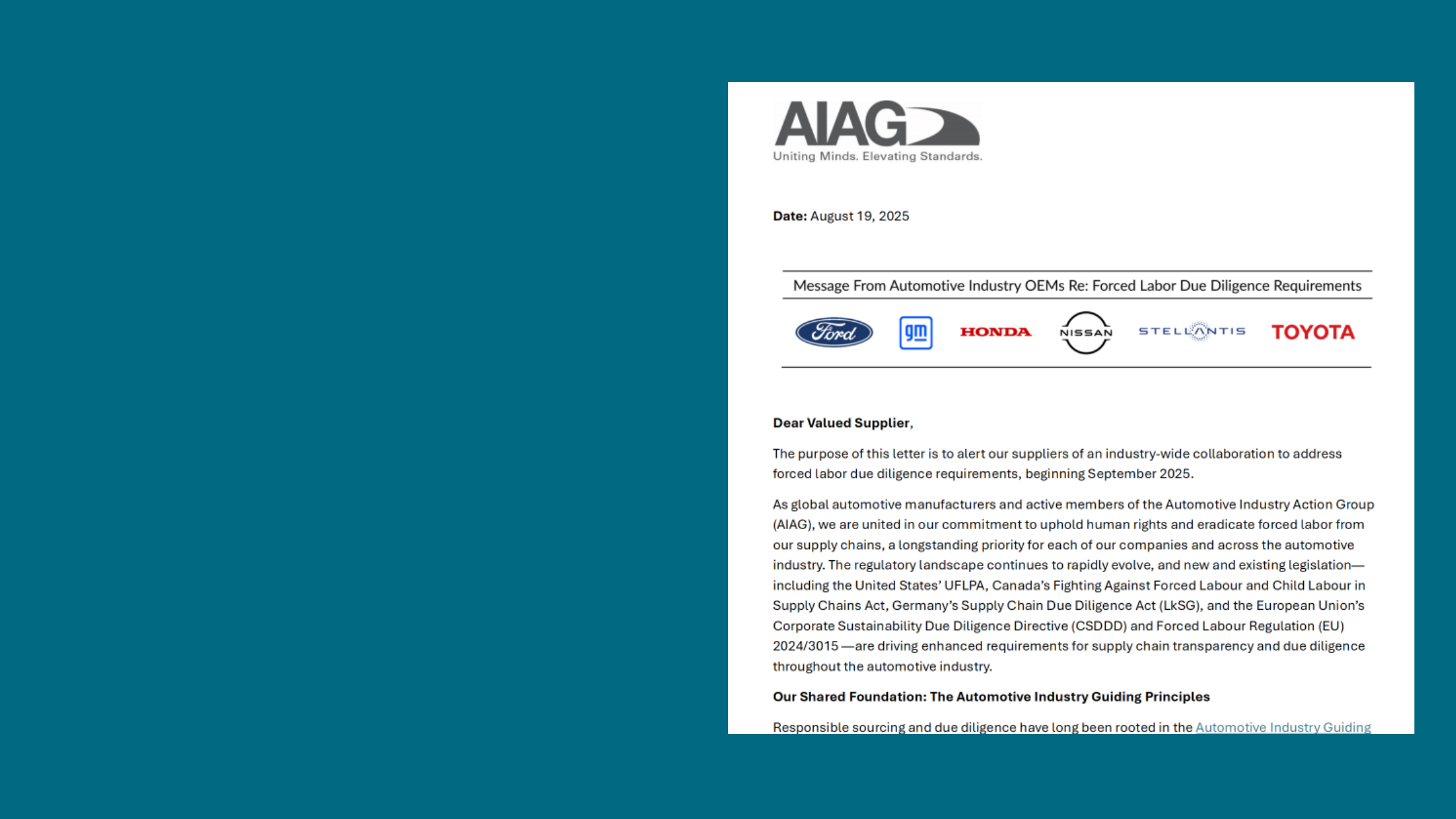 AIAG is the global automotive industry’s collaborative hub — uniting OEMs, suppliers, and service providers to create best-in-class processes for quality, supply chain, and sustainability. By fostering open collaboration and shared expertise, we drive progress and empower companies of all sizes to shape the future of automotive excellence.